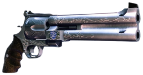 Fast firing hand cannon that does increased damage to animals and zombies.
